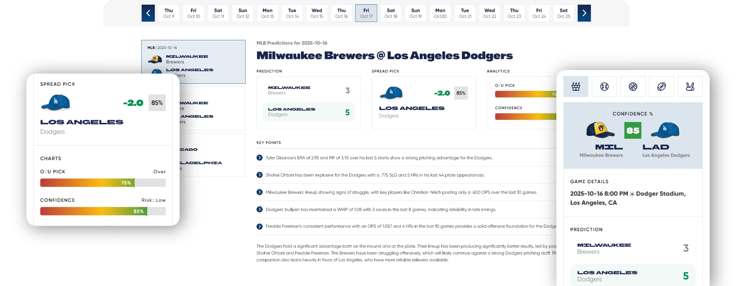 We use advanced metrics like OPS, FIP, and bullpen fatigue to simulate and forecast daily MLB matchups with precision.